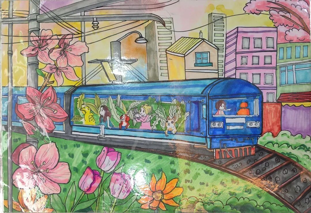 回到家,我迫不及待地在新买的素描本上画下了今天的冒险经历。油菜花翩翩起舞,山峦打喷嚏,古老的火车站闪烁……晚上我做了个好梦。我梦见我的小床变成了一辆彩色的火车,我继续“咔嗒、咔嗒”我的祖国历史之旅。